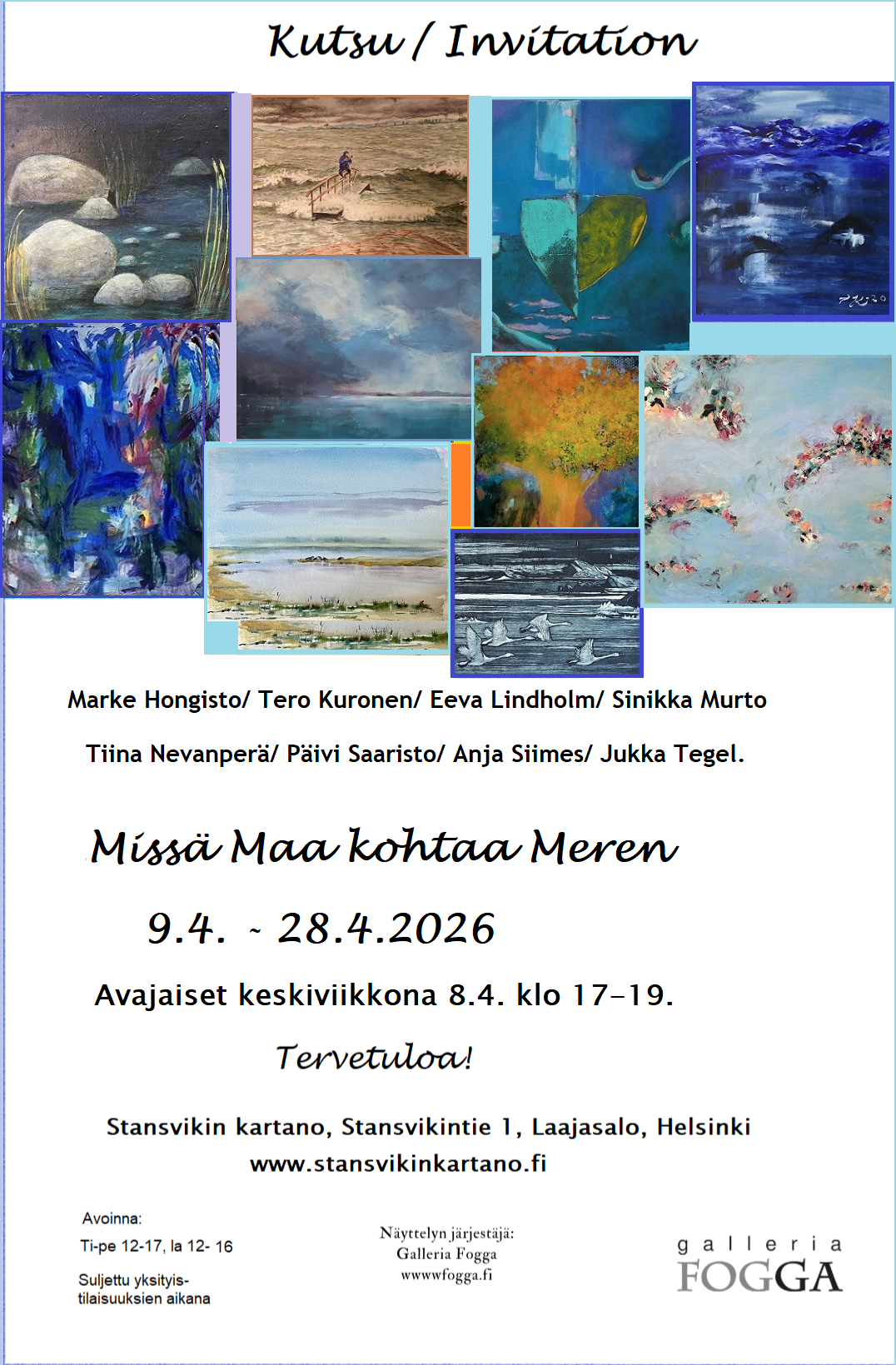 Galleria Foggan näyttely avautuu Stansvikin kartanossa keskiviikkona 8.4.2026. Tervetuloa!